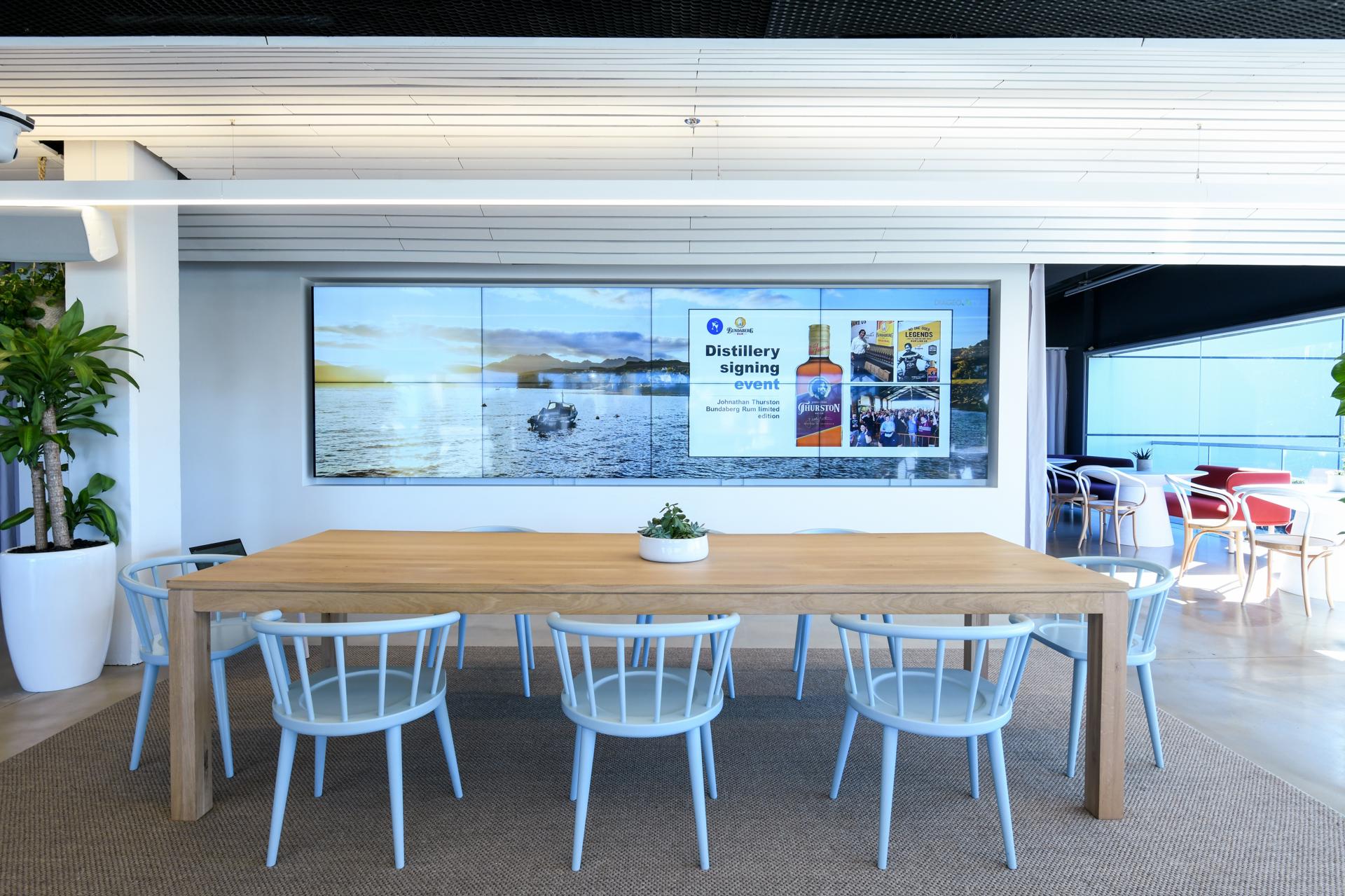 A key feature of the upgrade was the complete refurbishment of the training and facilities bar. This space was reimagined as an immersive environment, highlighted by the installation of a large scale video wall designed to support presentations, brand showcases, and interactive training sessions.