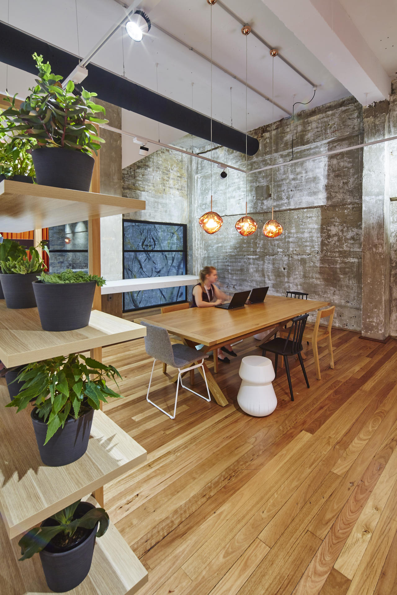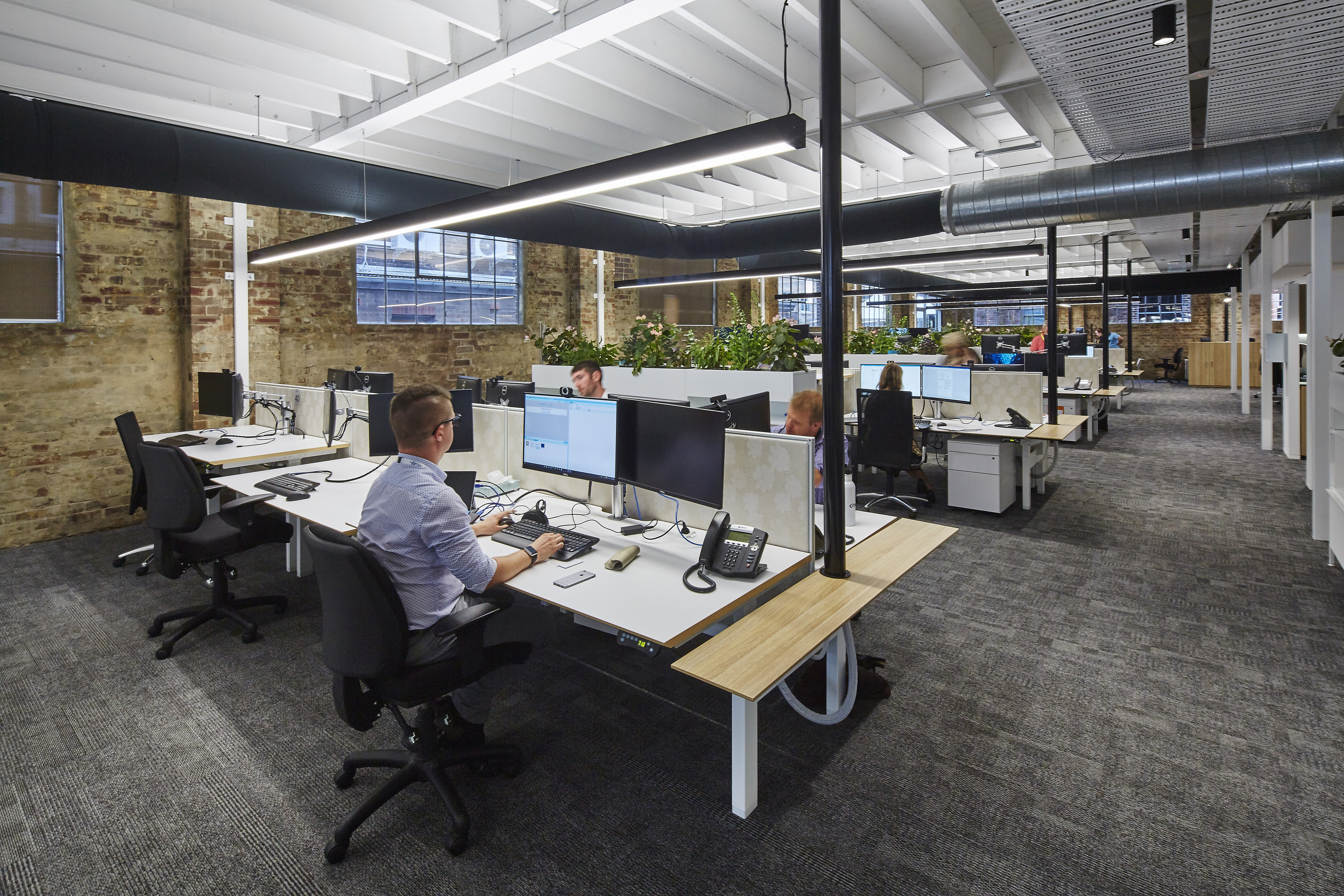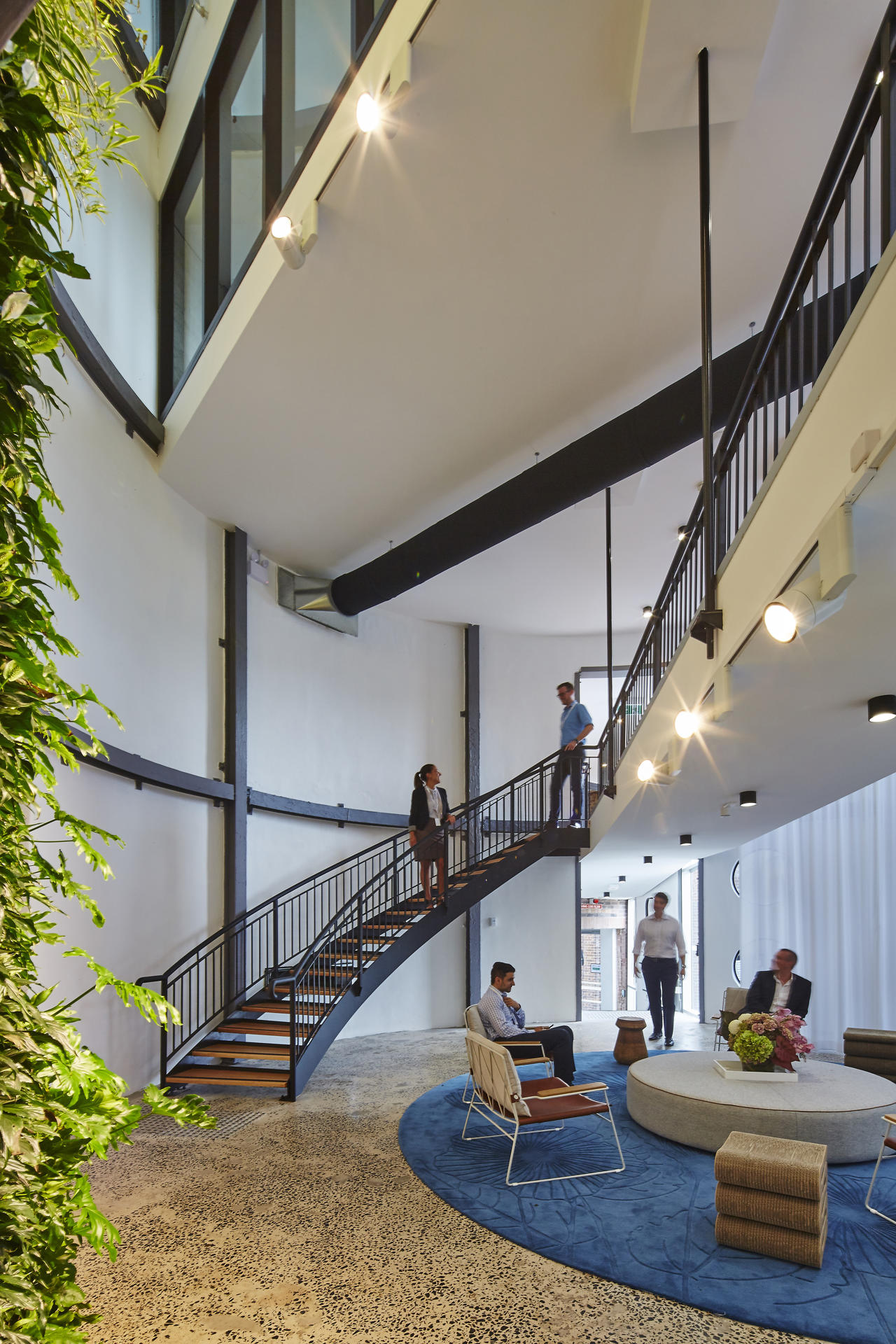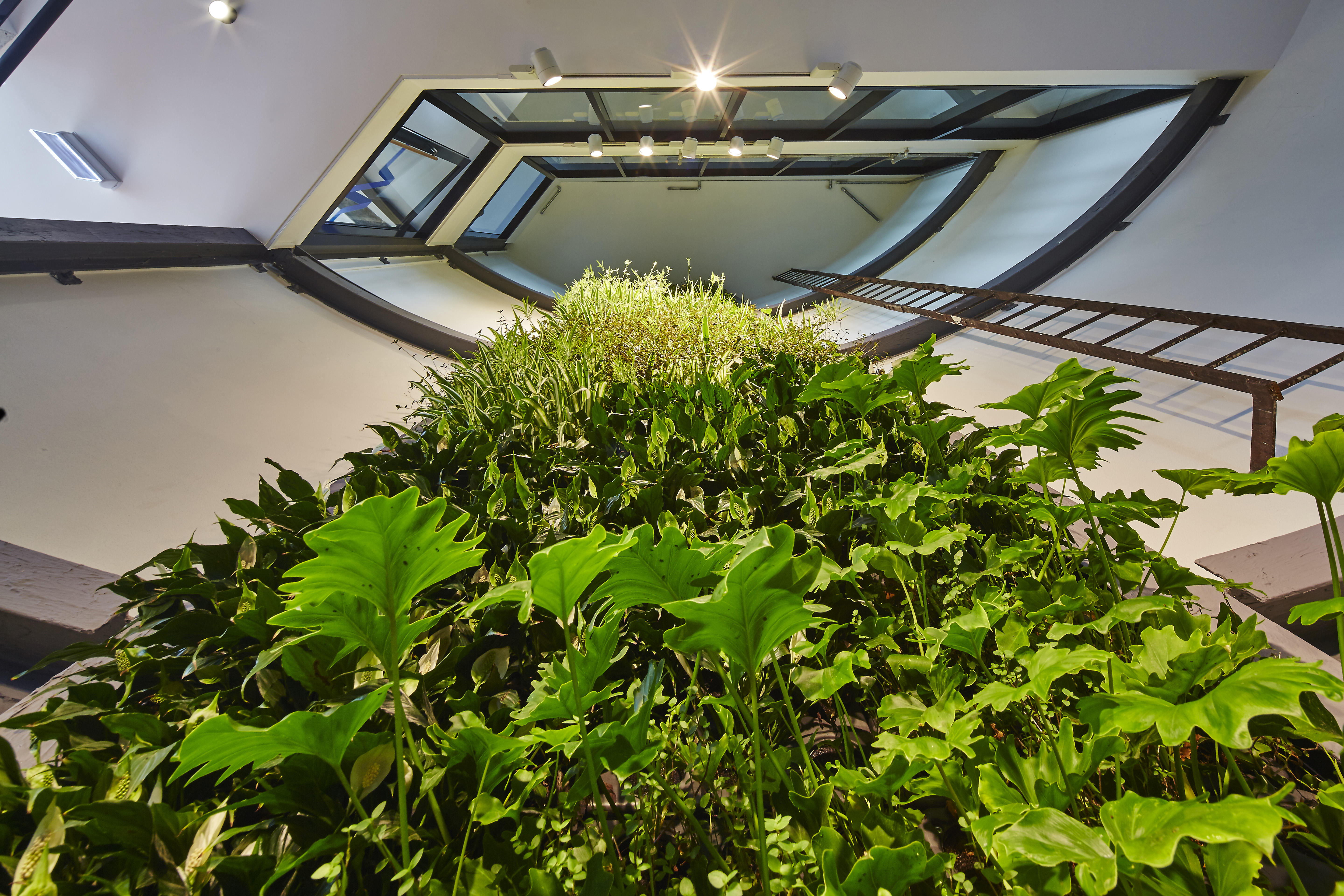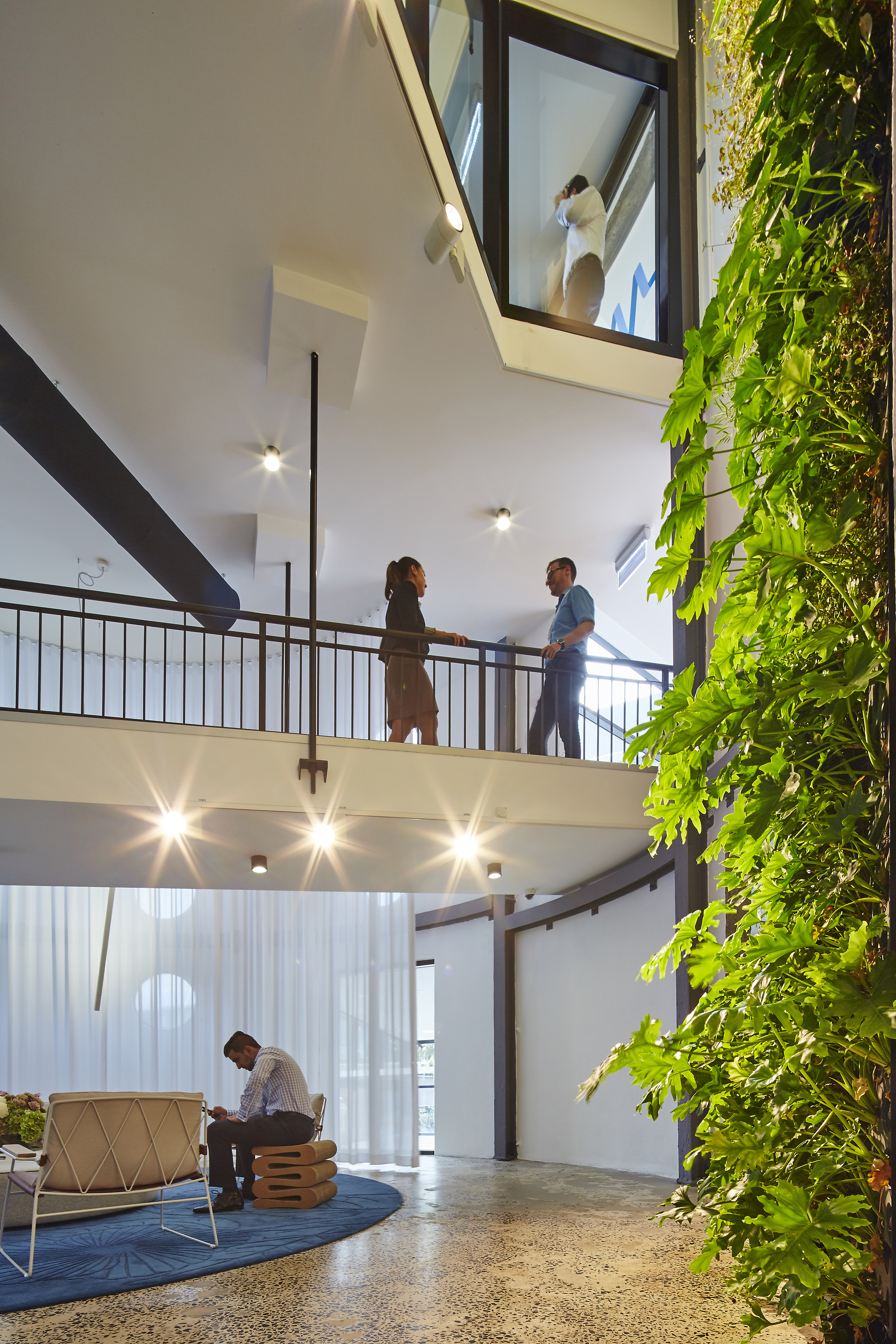 A standout feature of the project is the installation of a dramatic four level vertical garden within the central silo void. Visible from levels of the building, this living element introduces natural greenery into the heart of the workspace, creating a striking visual connection across floors and reinforcing a strong focus on wellbeing and biophilic design.